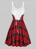 Lace Insert Plaid Print Lace up Sleeveless Dress