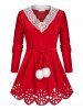 Plus Size Christmas Pompom Velvet Laser Cut Lace Panel Tee