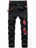 Flower Embroidered Ripped Tapered Jeans
