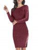 Ribbed Button Embellished Slit Metallic Thread Dress