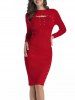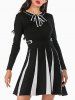 Knitted Mock Button Pussy Bow Two Tone Dress