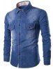 Turn Down Collar Pockets Design Bleach Wash Long Sleeve Denim Shirt For Men