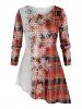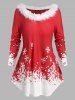 Plus Size Christmas Asymmetric Snowflake Plaid Print T Shirt