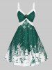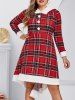 Plus Size Christmas Bicolor Elk Snowflake Print Dress