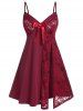 Plus Size Lace Bowknot Slit See Thru Lingerie Babydoll Set