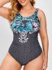 Plus Size Floral Leaf Mix Ruched Front One piece Swimsuit