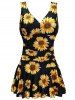 Plus Size Random Sunflower Ruched Skirted One piece Swimsuit