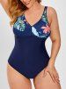 Plus Size Floral Leaf Panel One piece Swimsuit