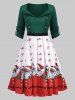 Sweetheart Neck Christmas Santa Claus Bell Pleated Dress