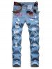 Destroy Wash Music Note Rose Embroidery Long Jeans