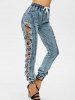 Drawstring Bowknot Ripped Elastic Hem Jeans