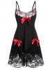 Plus Size Lace Sheer Draped Bowknot Lingerie Babydoll Set