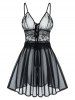 Lace Up Sheer Lace and Mesh Babydoll Dress