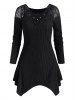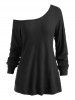 Plus Size Two Tone Bicolor Curved Hem Long Sleeve Tee