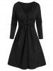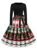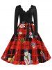 Scalloped Neck Christmas Pattern Plaid Belt Long Sleeve Dress