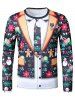Christmas Snowman Biscuit Faux Suit Print Slim Crew Neck T Shirt