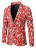 Christmas Snowman Birds Print Lapel Side Slit Blazer