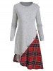 Plaid Panel 2 In 1 Buttons Asymmetric Dress