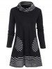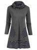 Cowl Neck Striped Patched Pocket Tee