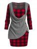 Plus Size Cowl Front Knitwear and Plaid Mini Bodycon Dress Set