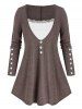 Plus Size Mock Button Lace Panel Curved Hem Tee