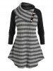 Plus Size Striped Raglan Sleeve Curved Hem Tunic Sweater
