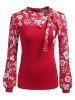 Pussy Bow Christmas Snowflake Umbrella Print Long Sleeve Blouse