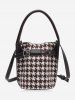 Retro Houndstooth Printed Bucket Bag