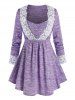 Plus Size Space Dye Applique Panel Curved Hem Tee