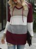 Hooded Colorblock Openwork Raglan Sleeve Knitwear