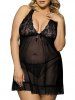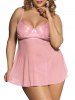 Plus Size Lace Mesh Sexy Sheer Lingerie Babydoll with T string