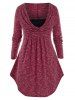 Plus Size Space Dye Cowl Front Curved Hem Lace Panel Tunic Tee