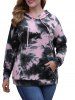 Raglan Sleeve Tie Dye Front Pocket Plus Size Hoodie