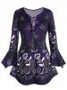 Plus Size Lace Up Bell Sleeve Floral Print T Shirt