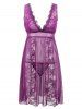 Plus Size Sheer Plunge Neck Lingerie Dress with Lace