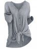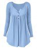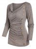 Long Sleeve Mock Button Ruched Heathered T shirt