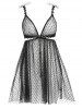Plus Size Heart Mesh See Thru Lingerie Babydoll Set