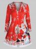 Plus Size Santa Flower Print Faux Fur Collar Dress