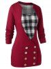 Plus Size Buttons Cardigan With Plaid Tank Top Set