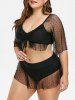 Dotted Mesh Panel Cinched Plus Size Two Piece Swimwear