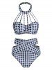 Checked Halter Strappy Underwire Tankini Swimwear