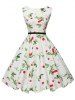 Belted Floral Cherry Print Sleeveless Dress