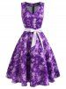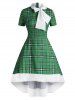 Christmas Faux Fur Insert Plaid Pussybow Dip Hem Dress