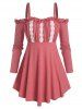 Plus Size Ruffle Lace Panel Cold Shoulder Tee