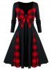 Plus Size Checked Bowknot Splicing Dress