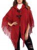 Fringed Hooded Horn Button Poncho Cardigan