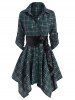Plaid Belted Roll Tab Sleeve Handkerchief Dress