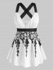 Plus Size Star Moon and Sun Crisscross Cami Backless Dress