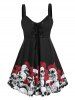 Plus Size Halloween Skull Flower Lace up Tank Top