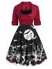 Halloween Collared Cuffed Pumpkin Bat Print Dress